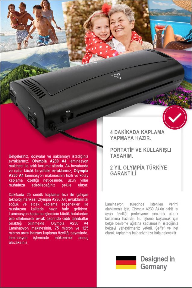 Laminasyon Kaplama Boyutu : A4 ve tüm küçük formatlar